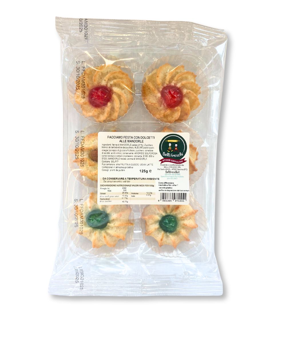 Scopri i nostri dolcetti alla pasta di mandorle senza glutine, morbidi, profumati e naturalmente golosi. Preparati con mandorle selezionate e ingredienti semplici, questi piccoli pasticcini sono perfetti per chi cerca un dolce genuino, ricco di gusto e adatto alle persone celiache.